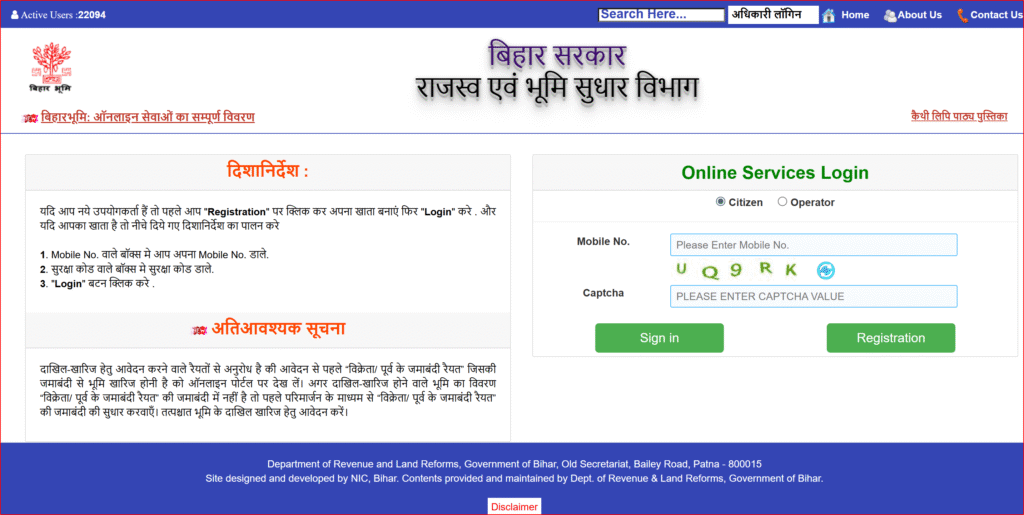 - ऑनलाइन h करने के लिए आपको बिहार भूलेख पोर्टल के आधिकारिक वेबसाइट पर जाना है।