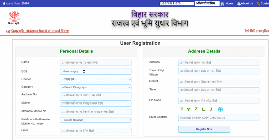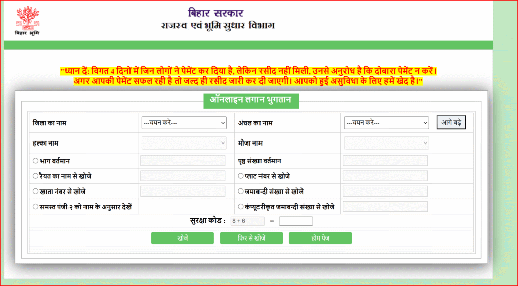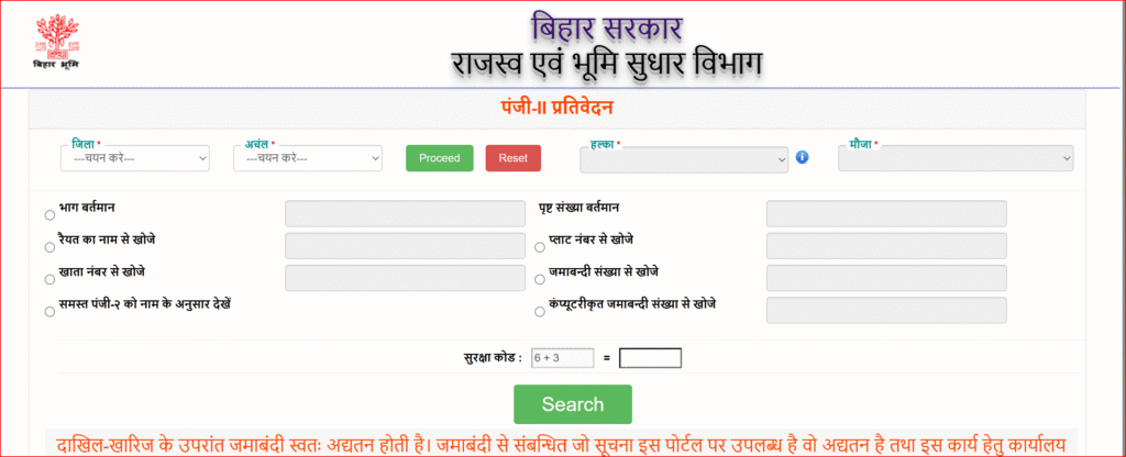 Bihar Bhulekh पोर्टल पर जमाबंदी पंजी देखें